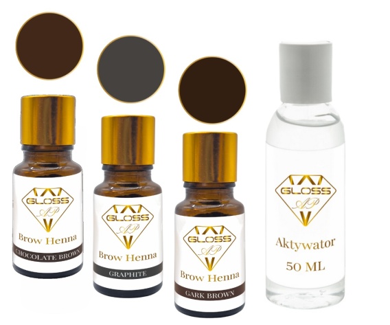 Zestaw henny pudrowej GLOSS do ciemnych włosów i karnacji Zestaw henny pudrowej GLOSS został stworzony z myślą o podkreśleniu naturalnego piękna brwi. Idealny dla osób z ciemnymi włosami i chłodną karnacją, zapewnia trwały, wyrazisty efekt. Dzięki różnorodnym odcieniom i dołączonemu aktywatorowi umożliwia pełną personalizację i precyzyjną aplikację. Zestaw zawiera: